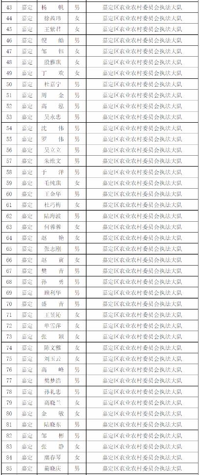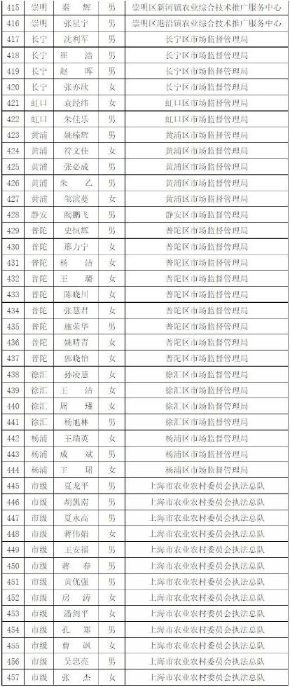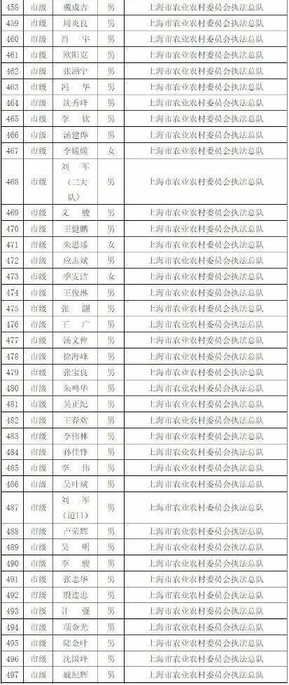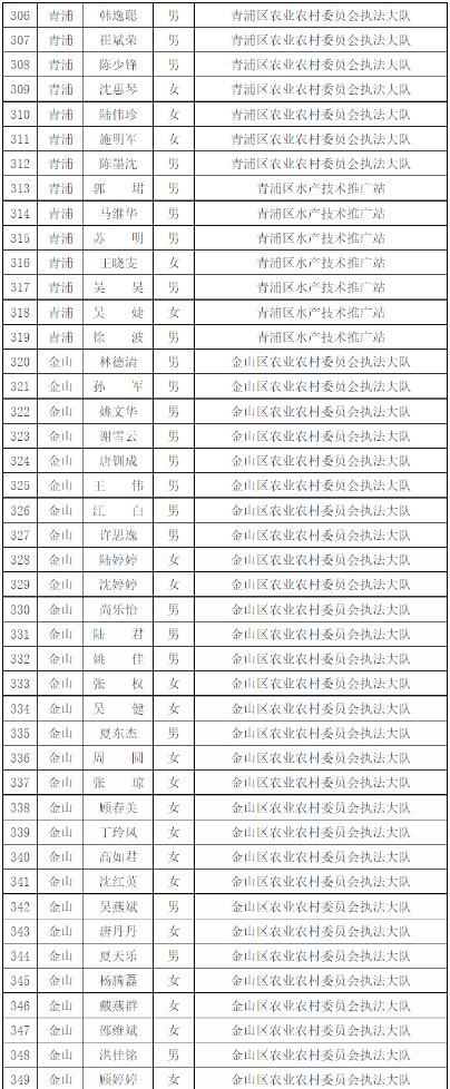 為進(jìn)一步做好本市官方獸醫(yī)(含漁業(yè)官方獸醫(yī))資格管理,加強(qiáng)隊(duì)伍建設(shè),根據(jù)《中華人民共和國(guó)動(dòng)物防疫法》《農(nóng)業(yè)部關(guān)于做好動(dòng)物衛(wèi)生監(jiān)督執(zhí)法人員官方獸醫(yī)資格確認(rèn)工作的通知》《農(nóng)業(yè)部辦公廳關(guān)于官方獸醫(yī)資格確認(rèn)條件的函》《農(nóng)業(yè)農(nóng)村部關(guān)于全面推進(jìn)實(shí)施水產(chǎn)苗種產(chǎn)地檢疫制度的通知》和《農(nóng)業(yè)農(nóng)村部辦公廳關(guān)于開(kāi)展動(dòng)物檢疫監(jiān)督能力提升行動(dòng)的通知》的要求,我委組織開(kāi)展了2022年度本市官方獸醫(yī)資格確認(rèn)工作。經(jīng)單位填報(bào)、區(qū)級(jí)復(fù)核、我委審查,擬確認(rèn)以下565人具有官方獸醫(yī)資格,現(xiàn)公示如下: