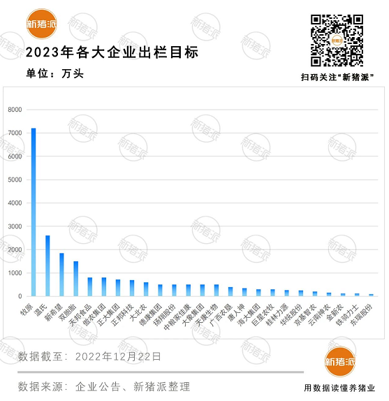 2021年全國出欄生豬6.71億頭,照此計算,2023年將接近7億頭,意味著25家豬企2023年目標出欄總量將至少占到全國的30%。養(yǎng)豬行業(yè)的寡頭時代來臨。