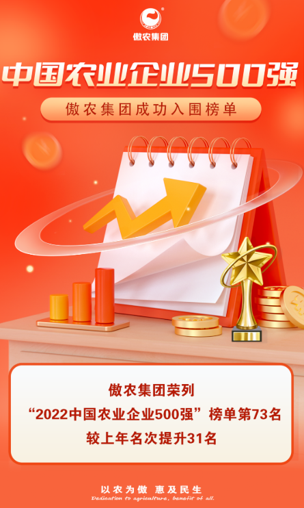 ??與2021年榜單排名相比,“2022中國農(nóng)業(yè)企業(yè)500強(qiáng)”榜單中傲農(nóng)集團(tuán)排名上升了31位。數(shù)字的變化,折射傲農(nóng)人堅(jiān)定不移前行的步伐,排名的提升,是給傲農(nóng)人持之以恒奮斗的回饋,連續(xù)入圍榜單,也從側(cè)面?zhèn)鬟_(dá)了廣大客戶、合作伙伴、行業(yè)社會對傲農(nóng)事業(yè)成果的充分認(rèn)可和對傲農(nóng)后續(xù)發(fā)展的飽滿信心。