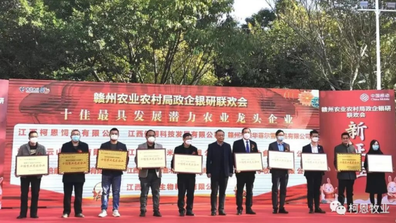 近期,贛州市綠色食品產業(yè)鏈推進協(xié)調小組辦公室正式發(fā)布《關于公布贛州市首屆十佳最具發(fā)展?jié)摿r業(yè)龍頭企業(yè)名單的通知》并為獲獎企業(yè)授牌,集團旗下江西柯恩飼料有限公司名列榜單。