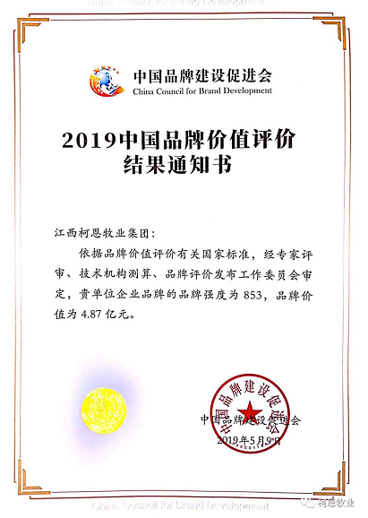 2019年5月9日,2019中國(guó)品牌價(jià)值評(píng)價(jià)信息發(fā)布活動(dòng)在上海舉辦,柯恩品牌被中國(guó)品牌建設(shè)促進(jìn)會(huì)認(rèn)定品牌價(jià)值為4.87億元。