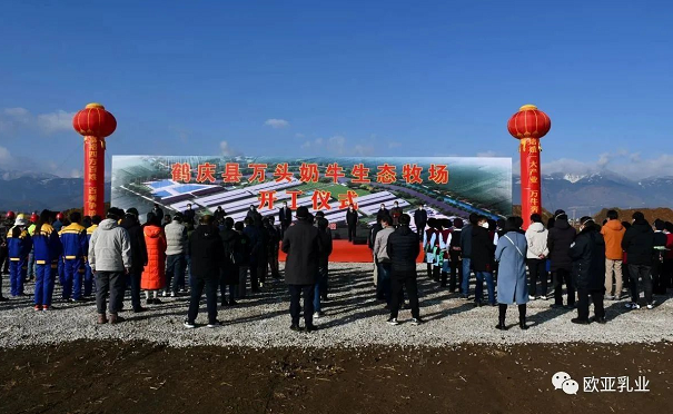 青山雪覆迎盛景,碧空雨霽兆新程。2022年12月28日,雨后的鶴慶沐浴冬日暖陽(yáng),山頂?shù)你y裝讓“水鄉(xiāng)”更加靚麗,在這樣一個(gè)明媚滿溢,景色如畫的日子,云南歐亞乳業(yè)有限公司鶴慶縣萬(wàn)頭奶牛生態(tài)牧場(chǎng)項(xiàng)目開工典禮隆重舉行,鶴慶縣委副書記、縣長(zhǎng)張洪軍蒞臨儀式現(xiàn)場(chǎng),并宣布:“鶴慶縣萬(wàn)頭奶牛生態(tài)牧場(chǎng)開工!”