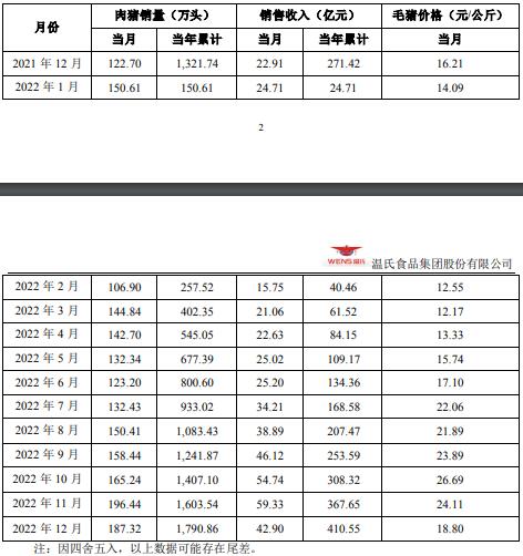2、2022年12月和2022年度,公司肉豬銷售收入同比上升,主要是銷量和銷售均價同比上升所致。