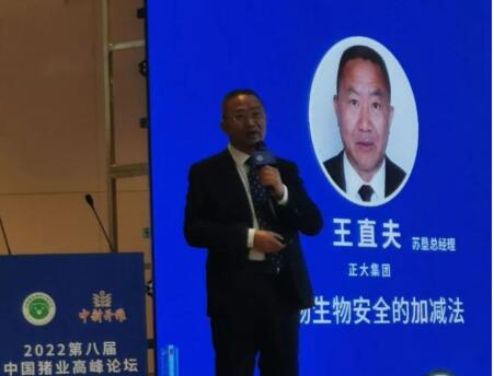 正大集團蘇墾總經理王直夫先生的報告,從正大集團介紹、對豬場生物安全的理解、生物安全做加法、生物安全做減法、當前豬場生物安全注意事項等方面做了分享。他提到當前非洲豬瘟病毒(野毒、變異毒、野疫苗毒)大環(huán)境污染嚴重,外緊內松是最佳的生物安全策略。