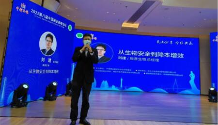 瑞普生物湖南中岸公司總經理劉建先生的報告“從生物安全到降本增效”,從后非瘟時代的特點、需求與方案-生物安全,需求與方案-免疫抑制,需求與方案-免疫副反應,瑞普平臺助力行業(yè)發(fā)展等五方面做了介紹。