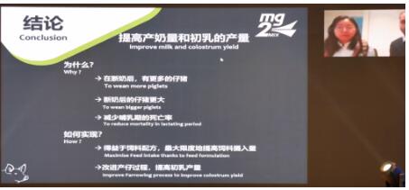 法國高牧亞太技術總監(jiān)Julien Tissier睿廉先生的報告“激發(fā)母豬生殖潛能的精準營養(yǎng)”,他首先介紹了法國高牧的主營內容 “預混料生產和動物營養(yǎng)咨詢/服務”,接著在激發(fā)母豬生殖潛能的精準營養(yǎng)的具體介紹中,分享了法國高牧在母豬懷孕期、哺乳期的不同飼喂方案和飼料配方。