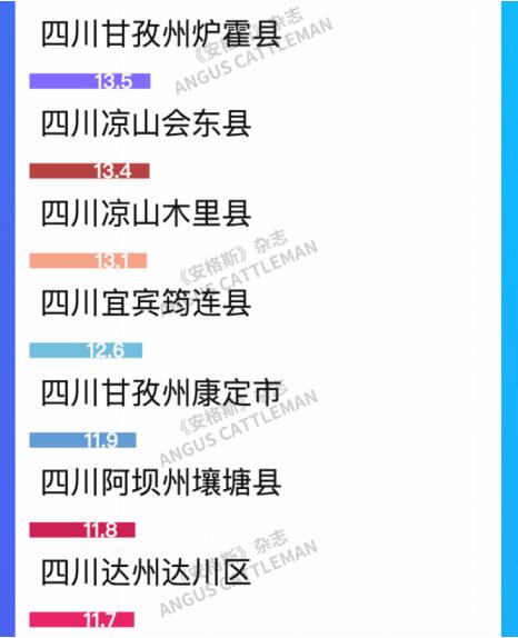 巴中和宜賓各1個(gè):巴中南江縣10.8萬頭,宜賓筠連縣12.6萬頭。