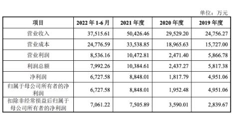 2019年、2020年、2021年和2022年上半年,齊暉醫(yī)藥的營(yíng)收分別為2.48億元、2.95億元、5.04億元和3.75億元,凈利潤(rùn)分別為4951.06萬(wàn)元、1817.79萬(wàn)元、8848.01萬(wàn)元和6727.58萬(wàn)元,扣非后凈利潤(rùn)分別為2839.67萬(wàn)元、3590.01萬(wàn)元、7505.89萬(wàn)元和7061.22萬(wàn)元。