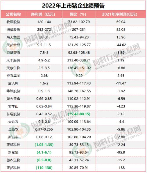 再看凈利潤,得益于2022年下半年豬價的一路走高,80%的豬企同比2021年扭虧為盈,且與比去年相比,均翻了1-3倍,而虧損的4家豬企與2021年相比凈利潤也有大幅度的減虧。