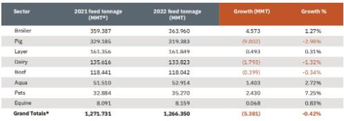 而減少的地區(qū)則是歐洲(-4.67%),非洲(-3.86%),亞太地區(qū)(-0.51%)。歐洲降幅最大,主要是因為戰(zhàn)爭,非洲豬瘟和禽流感等動物疾病的傳播。非洲飼料產(chǎn)量減少主要是因為埃及、摩洛哥、肯尼亞和尼日利亞的飼料產(chǎn)量減少。