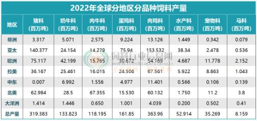 產(chǎn)量最高的三個區(qū)域仍然是亞太、歐洲和北美,產(chǎn)量分別為4.66億噸、2.63億噸和2.62億噸,增加的區(qū)域分別是拉丁美洲(1.6%)、北美洲(0.88%)和大洋洲(0.32%),中東地區(qū)飼料產(chǎn)量同比增加近25%,一是因為調(diào)查范圍和來源的改進(jìn),二是因為沙特阿拉伯國家主動擴(kuò)大肉雞養(yǎng)殖來滿足自己的需求。