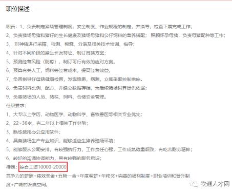 招聘生豬養(yǎng)殖業(yè)管理干部10人,青睞具備牧原、溫氏等頭部企業(yè)5年以上繁殖、育肥工作經(jīng)驗的求職者,工作地在浦東新區(qū),結合標出的待遇是2萬以上,看起來雖然名義上是干部卻也能對標場長職級。