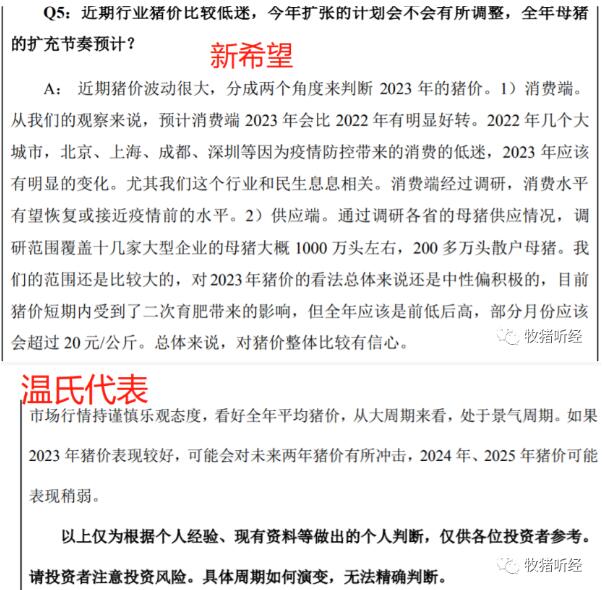 回顧去年,養(yǎng)殖端是什么心態(tài)?Q1中提到,1-3月份喊大家補欄仔豬,奈何敢動手的不多。說明什么問題?養(yǎng)殖端去年整體悲觀,年初能看到20的人都是神。然而,隨著行情的走向,養(yǎng)殖端的心態(tài)開始發(fā)生了明顯的變化。站在當前看去年,我們可以理解為去年上半年行業(yè)對市場很悲觀,下半年隨著豬價的飛升,養(yǎng)殖端開始集體壓欄賭漲,客觀的講不能用賭,畢竟都是為了一頭豬多賣點錢,可以說是追求量(體重增長)價(價格增加)利潤,而當全行業(yè)都在集中干這一件事時,擊鼓傳花的游戲必定有玩不下去的一天,只是時間和契機的問題,現在回過頭來想想,何嘗不是如此?這里的準繩是什么,我們應該站在生意的角度,仔細思考這個問題。一句話總結,去年的心態(tài)是上半年極度悲觀,下半年極度樂觀,甚至是狂熱。而反觀今年,截至目前,養(yǎng)殖端的心態(tài)比去年上半年要好,讓筆者給養(yǎng)殖心態(tài)下個定義的話,應該算謹慎樂觀吧。這體現在以下幾個方面:其一,仔豬的價格明顯高于去年同期,為何?一則,當前外購仔豬價格與自繁自養(yǎng)成本相差無幾,那么對于追求擴規(guī)模,做大營收的養(yǎng)殖企業(yè)而言,未嘗不是一種好的選擇。有鑒于此,仔豬年后價格沒有跟隨肥豬價格進一步走低,反而較年前增加了50-100元/頭。這又說明什么?側面證明養(yǎng)殖端對后市并不悲觀。二則,年后仔豬迎來季節(jié)性補欄,有了去年的前車之鑒,很多人的心態(tài)和心理預期會有調整,去年錯過了,今年不能再錯過了,現在的價格抓豬苗,似乎風險也不大,就開始干了,仔豬價格有了支撐,是與不是?其二,我們看一下大企業(yè)對今年豬市的整體判斷,這表明了規(guī)模企業(yè)對后市的預期,也影響著他們年初所制定的經營策略。