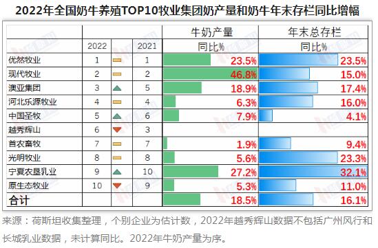 ·TOP10集團(tuán)存欄奶牛185萬(wàn)頭,同比增長(zhǎng)16% 全國(guó)荷斯坦奶牛同比增長(zhǎng)10.5%,占全國(guó)荷斯坦存欄620萬(wàn)頭的30%;
