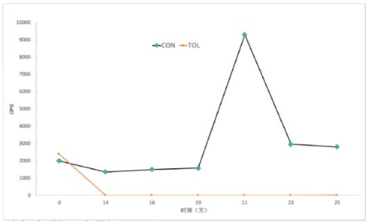 2022年8月-11月,禮藍(lán)動保在國內(nèi)某集團(tuán)牧場選取了30頭剛斷奶犢牛,隨機(jī)分為 2 組,每組15頭,一組口服托曲珠利(15mg/kg),一組不給藥(對照組),然后檢測 OPG、記錄腹瀉評分和增重,試驗周期76天。