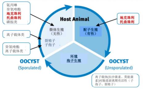 不同抗球蟲藥作用階段