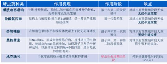 不同抗球蟲藥特點