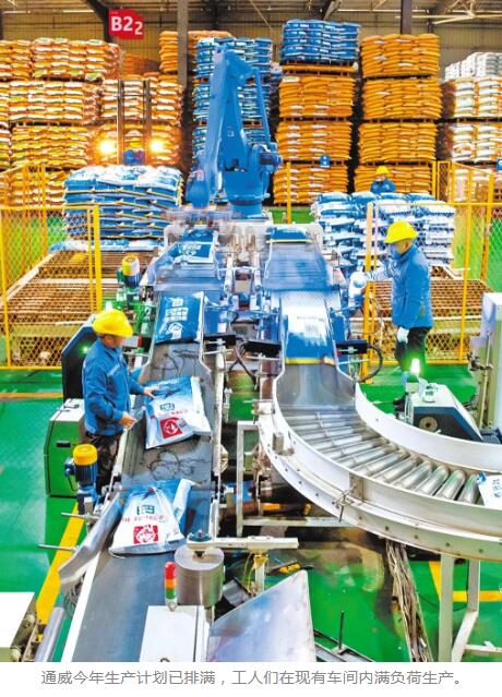 據(jù)悉,天門通威是通威集團控股子公司,2012年3月落戶天門工業(yè)園,專業(yè)生產(chǎn)水產(chǎn)飼料。2017年,公司在二期廠房增設(shè)2條生產(chǎn)線,5條生產(chǎn)線可年產(chǎn)飼料15萬噸。公司副總經(jīng)理丁亞虎介紹說“公司今年已接到蝦蟹料訂單9萬噸、水產(chǎn)料訂單7萬噸,全年生產(chǎn)計劃已排滿,年產(chǎn)值可達8億元?!?—5月是蝦蟹料生產(chǎn)旺季,7—9月是水產(chǎn)料生產(chǎn)旺季。即便處于淡季,在公司大門口,前來拖飼料的貨車仍然源源不斷?!?br>