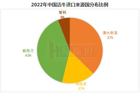 2022年新西蘭是最大進(jìn)口來(lái)源國(guó),占40%,進(jìn)口活牛數(shù)量14.07萬(wàn)頭,同比增長(zhǎng)13%,澳大利亞位居第二,占37%,進(jìn)口活牛13.07萬(wàn)頭,同比增長(zhǎng)20%。