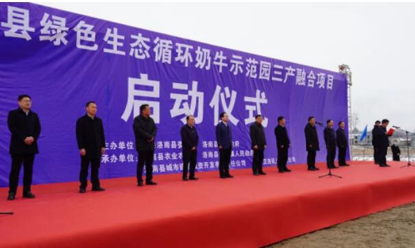 啟動(dòng)儀式由縣長方德軍主持。省農(nóng)業(yè)農(nóng)村廳副廳長任步學(xué)同志宣布開工令。省發(fā)改委副主任、蘇陜協(xié)作工作隊(duì)領(lǐng)隊(duì)肖延川,副市長劉偉分別講話。縣委常委、副縣長姚猛介紹洛南綠色生態(tài)循環(huán)奶牛示范園三產(chǎn)融合項(xiàng)目有關(guān)情況。古城鎮(zhèn)黨委書記楊新良、南京衛(wèi)崗乳業(yè)有限公司投資總監(jiān)唐寧分別發(fā)言。