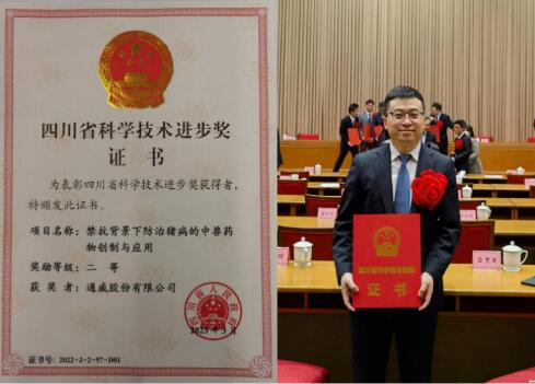 通威股份獲獎項目《禁抗背景下防治豬病的中獸藥物創(chuàng)制與應用》,以中獸醫(yī)理論及中獸藥新藥為基礎,以替抗、促進食品安全、保護生態(tài)環(huán)境為出發(fā)點,針對重要豬病,通過創(chuàng)新應用個體辨證和病因辨證相結合的群體化辨證思路開展辨證論治;全面解析了有效方藥的作用機制;并創(chuàng)制中獸藥新藥用于生豬養(yǎng)殖關鍵環(huán)節(jié)疾病防控,構建了6種消化系統(tǒng)、4種呼吸系統(tǒng)、6種免疫系統(tǒng)重要豬病防控技術,同時準確把握中獸藥應用難點,優(yōu)化關鍵中獸藥的制備工藝,構建6套中獸藥現(xiàn)代化制備技術。項目獲得新獸藥證書2項,獲國家授權發(fā)明專利10項,發(fā)表論文38篇,其中SCI收錄12篇。集成技術已推廣應用于多個規(guī)模化養(yǎng)殖企業(yè),在禁抗背景下形成了良好的生豬生態(tài)養(yǎng)殖示范效應。相關中獸藥物1906噸,推廣使用4908萬頭豬,新增產(chǎn)值177220.06萬元,經(jīng)濟效益和社會效益顯著。