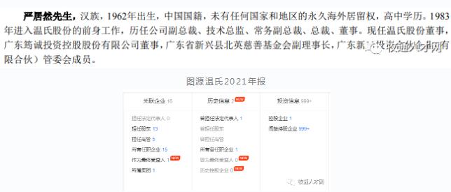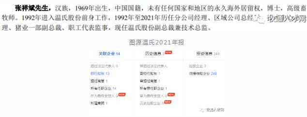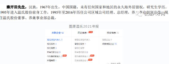 23歲進(jìn)入溫氏股份前身工作,入職31年,現(xiàn)任溫氏股份副總裁兼技術(shù)總監(jiān)。據(jù)愛企查數(shù)據(jù)顯示,間接持股企業(yè)249家。