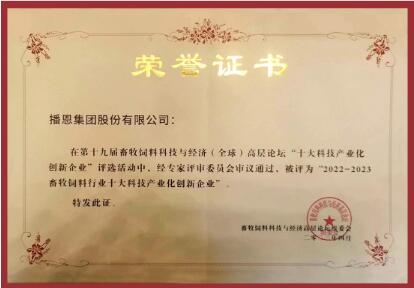 播恩集團喜獲“十大科技產(chǎn)業(yè)化創(chuàng)新企業(yè)”獎