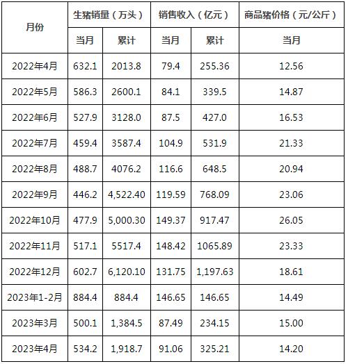 牧原股份5月6日公布2023年4月份生豬銷(xiāo)售簡(jiǎn)報(bào)。2023年4月份,公司銷(xiāo)售生豬534.2萬(wàn)頭(其中商品豬519.2萬(wàn)頭,仔豬13.0萬(wàn)頭,種豬2.0萬(wàn)頭),銷(xiāo)售收入91.06億元。其中向全資子公司牧原肉食品有限公司及其子公司合計(jì)銷(xiāo)售生豬103.3萬(wàn)頭。