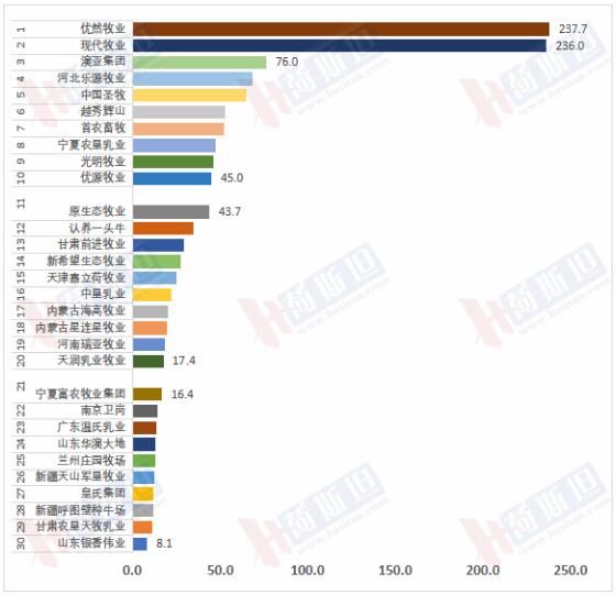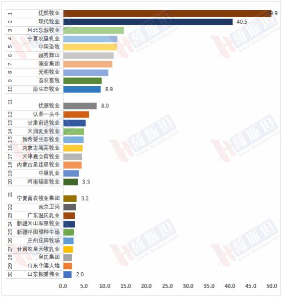 牧業(yè)集團Top30中奶牛存欄均超過2萬頭。