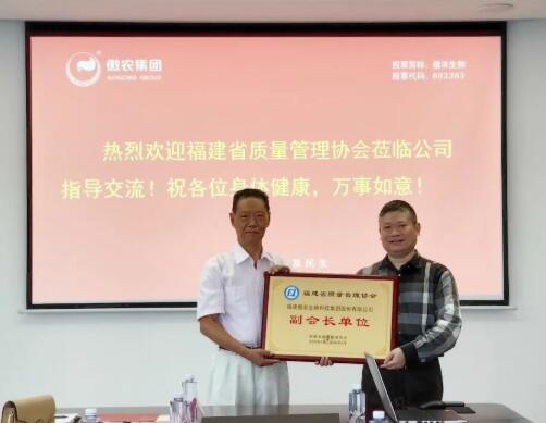 ?? 座談會上,雙方圍繞協(xié)會/企業(yè)情況、工作開展內(nèi)容、質(zhì)量管理體系建設(shè)等主題展開了熱烈交流。作為農(nóng)業(yè)產(chǎn)業(yè)化國家重點龍頭企業(yè),傲農(nóng)不忘初心,謹記自身事業(yè)發(fā)軔于八閩大地,始終重視質(zhì)量與品牌建設(shè),嚴格有序推進相關(guān)工作,現(xiàn)已取得一系列成就,市場影響力、品牌知名度和客戶美譽度穩(wěn)步提升。同時,傲農(nóng)也懷著赤誠之心,期待能夠為福建省農(nóng)牧行業(yè)升級、鄉(xiāng)村振興事業(yè)發(fā)展出一份應(yīng)盡之力。正式成為省質(zhì)協(xié)副會長單位后,傲農(nóng)將本著資源共享、合作共贏的原則,積極開展質(zhì)量管理及品牌建設(shè)等工作,讓質(zhì)量為傲農(nóng)事業(yè)走向更加美好的未來添磚加瓦。期間,吳有林董事長代表傲農(nóng)集團接受省質(zhì)協(xié)授牌。