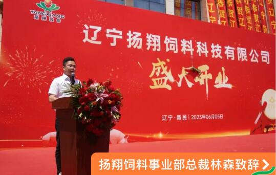 慶典儀式上,揚翔股份飼料事業(yè)部總裁林森發(fā)表致辭,向長期關(guān)心和支持揚翔股份的各級領(lǐng)導(dǎo)和嘉賓表示了衷心的感謝,并就遼寧揚翔飼料科技有限公司的基本情況和發(fā)展規(guī)劃向與會嘉賓做了詳細(xì)闡述。
