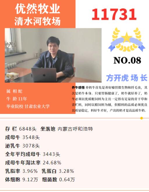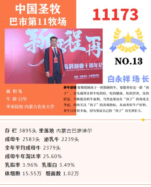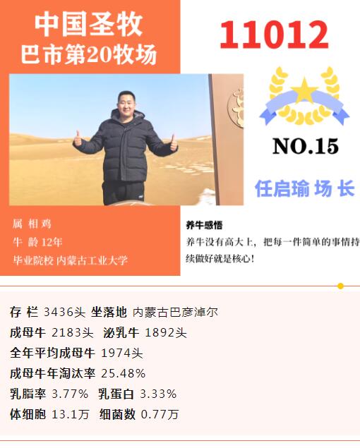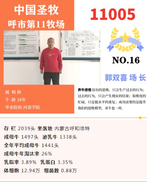 內(nèi)蒙古山西地區(qū)16家入圍牧場(chǎng)主要來(lái)自星連星牧業(yè)、優(yōu)然牧業(yè)、中國(guó)圣牧等牧業(yè)集團(tuán)。山西永濟(jì)超人奶業(yè)也位列其中。其中最大存欄13052頭,最小存欄2039頭。