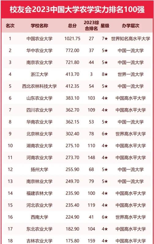 榜單顯示,中國農(nóng)業(yè)大學(xué)、華中農(nóng)業(yè)大學(xué)、南京農(nóng)業(yè)大學(xué)雄居2023中國大學(xué)農(nóng)學(xué)實(shí)力排名前3甲,華南農(nóng)業(yè)大學(xué)第8,湖南農(nóng)業(yè)大學(xué)第10。