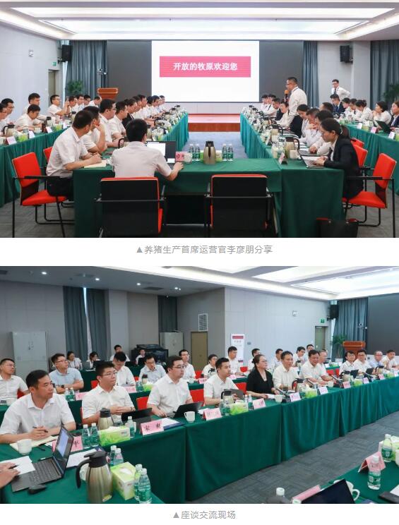 座談會上,牧原首先向到訪企業(yè)介紹了公司經(jīng)營成果,著重分享了牧原如何從技術(shù)元點(diǎn)發(fā)力,實(shí)現(xiàn)業(yè)務(wù)底層突破,探索出了種、料、康、智、潔等二十大鉆尖技術(shù),積累了豐富的技術(shù)成果,攻克了生豬育種、飼料營養(yǎng)、疫病防控、智能養(yǎng)殖、養(yǎng)豬環(huán)保等一系列難題,用技術(shù)創(chuàng)新提升現(xiàn)有資源轉(zhuǎn)化效率。并提到養(yǎng)豬行業(yè)還有4000億空間待挖潛,希望行業(yè)能共創(chuàng)共享,共同發(fā)展。溫氏股份也向與會人員分享了本公司發(fā)展經(jīng)營情況及技術(shù)體系建設(shè)經(jīng)驗(yàn)。參會領(lǐng)導(dǎo)紛紛表示對各自企業(yè)有了更深入的了解,對雙方的專業(yè)能力、技術(shù)創(chuàng)新等有了全方位的認(rèn)知。隨后,大家就技術(shù)難題進(jìn)行了深入溝通交流,暢談所感所想,共同探討如何進(jìn)一步提升養(yǎng)豬業(yè)績,實(shí)現(xiàn)高質(zhì)量發(fā)展。