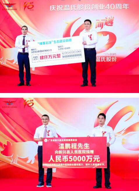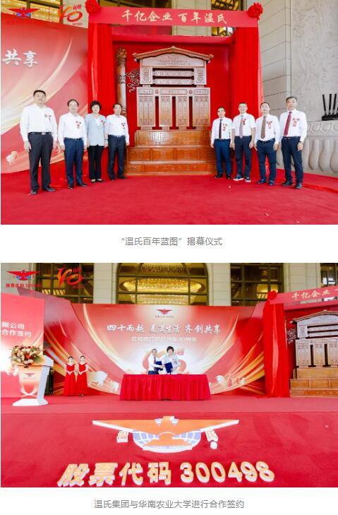 當(dāng)天,與會(huì)嘉賓代表與溫氏集團(tuán)負(fù)責(zé)人一道為“溫氏百年藍(lán)圖”揭幕,并先后舉行了合作簽約儀式與捐贈(zèng)儀式。