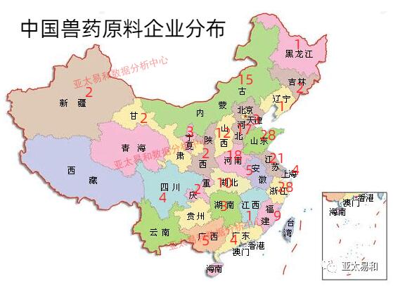 主要獸藥原料藥產(chǎn)品的分布