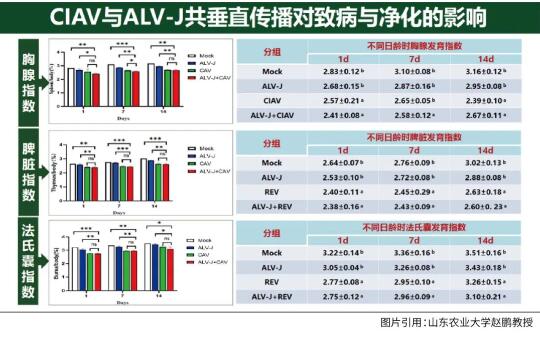 ④傳貧和白血病通過雞胚共同垂直傳播后對下一代的影響。實驗研究發(fā)現(xiàn)前兩周對整個免疫器官會產(chǎn)生損傷,毫無疑問共感染對脾臟、法氏囊都有一定影響。另外,這兩個病毒通過雞胚垂直傳播之后,也會幫助另一個病毒在機體內(nèi)顯著增強復(fù)制。