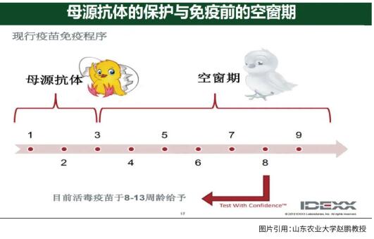 我們通常通過免疫或自然感染誘導(dǎo)后,再監(jiān)測種源的傳貧抗體滴度、整齊度、離散度,以及監(jiān)測下一代雛雞的母源抗體滴度、整齊度、離散度。我們希望抗體滴度越高越好,離散度越低越好。無論用什么方式實現(xiàn)了這個目標(biāo),臨床上一般不會出現(xiàn)傳貧的問題。所以傳貧防控的核心一直是讓雞獲得足夠的高質(zhì)量的母源抗體,以此擋住傳貧的早期感染,如果能擋住早期感染,即使大日齡的雞再感染也會很容易產(chǎn)生傳貧抗體,不容易形成持續(xù)性帶毒或者垂直傳播,從而又容易產(chǎn)生新的抗體,形成新一輪的抗體循環(huán)。我們希望母源抗體能在傳貧最易感的時期保護雞群免于感染,以避免長期持續(xù)帶毒及形成垂直傳播的可能性。對于傳貧,無論是疫苗免疫還是自然感染誘導(dǎo),我們希望抗體升上去后在整個產(chǎn)蛋期保持非常平穩(wěn)的狀態(tài)。