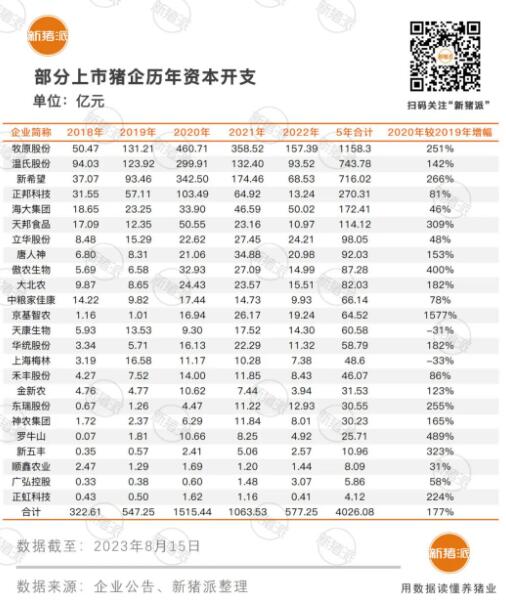 24家豬企資本開支一年增長(zhǎng)近2倍