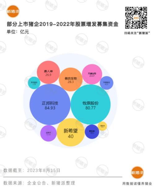 如此巨大的資金投入,上市豬企依靠自身每年的凈利潤(rùn)實(shí)屬難以為繼,需要通過發(fā)行股票、發(fā)行債券等方式來補(bǔ)充。而據(jù)新豬派統(tǒng)計(jì),2019-2022年,牧原等11家上市企業(yè)通過股票增發(fā)實(shí)際募集的資金總額為326.71億元,與其建設(shè)生豬產(chǎn)能所需的資金仍相去甚遠(yuǎn)。