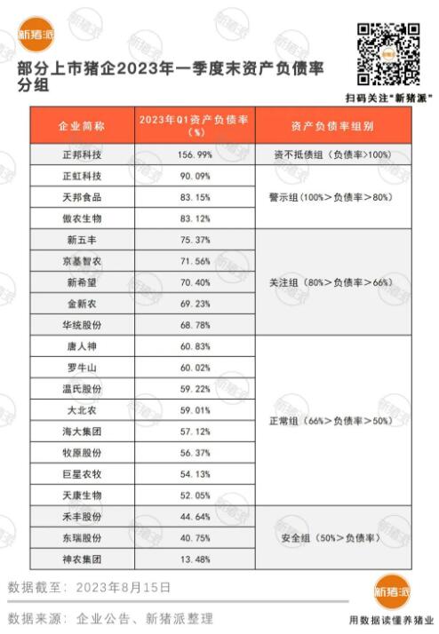 資產(chǎn)負(fù)債率過高,企業(yè)的財(cái)務(wù)風(fēng)險(xiǎn)將隨之陡增。2023年一季度末,正邦、正虹科技、天邦、傲農(nóng)的資產(chǎn)負(fù)債率已經(jīng)超過了80%,高于其他上市豬企。一旦償債能力薄弱,它們面臨的經(jīng)營(yíng)壓力不言而喻,傲農(nóng)生物將部分股份轉(zhuǎn)讓給國(guó)企“漳州金投”,也正是為了補(bǔ)充資金和降低經(jīng)營(yíng)風(fēng)險(xiǎn)。