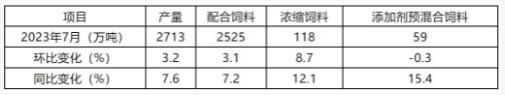 7月全國(guó)飼料產(chǎn)量2713萬(wàn)噸,環(huán)比增長(zhǎng)3.2%,同比增長(zhǎng)7.6%