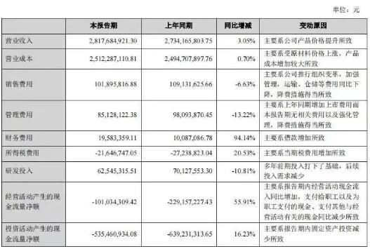 粵海飼料提及,報告期內(nèi),面對特種水產(chǎn)飼料主要原材料魚粉等動物蛋白類原材料特別是魚粉的持續(xù)高位大幅度上漲的不利因素,公司積極采取措施,繼續(xù)深化經(jīng)營管理變革,持續(xù)加大研發(fā)力度,持續(xù)優(yōu)化和調(diào)整產(chǎn)品結(jié)構(gòu),、提升生產(chǎn)工藝技術(shù)與管理水平,進一步優(yōu)化營銷與職能部門組織結(jié)構(gòu)及薪酬與績效考核體系,強化采購與產(chǎn)品質(zhì)量管理,把產(chǎn)品質(zhì)量管控前移至采購端,提高人效,嚴控費用,較好的實現(xiàn)了降本降費增效目標,公司銷售費用、管理費用同比分別下降6.63%、13.22%,毛利率水平同比提升2.08%,營業(yè)收入同比增長3.05%,歸屬于上市公司股東的凈利潤同比增長33.83%,增長較大。