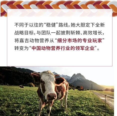 回歸后,她從嘉吉動物營養(yǎng)中國區(qū)總裁,到現(xiàn)任嘉吉動物營養(yǎng)北亞區(qū)業(yè)務(wù)集團(tuán)總裁,全面負(fù)責(zé)中國、韓國和日本業(yè)務(wù)的組織和業(yè)務(wù)管理,帶領(lǐng)團(tuán)隊(duì)屢次突破業(yè)績的歷史記錄,不斷優(yōu)化投資布局,實(shí)現(xiàn)可持續(xù)增長。
