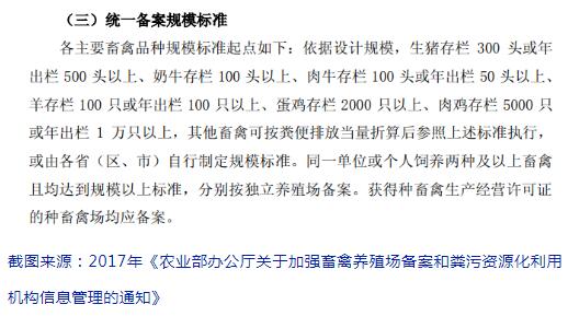 2、原標準:奶牛存欄≥100頭、肉牛存欄≥100頭或年出欄≥50頭