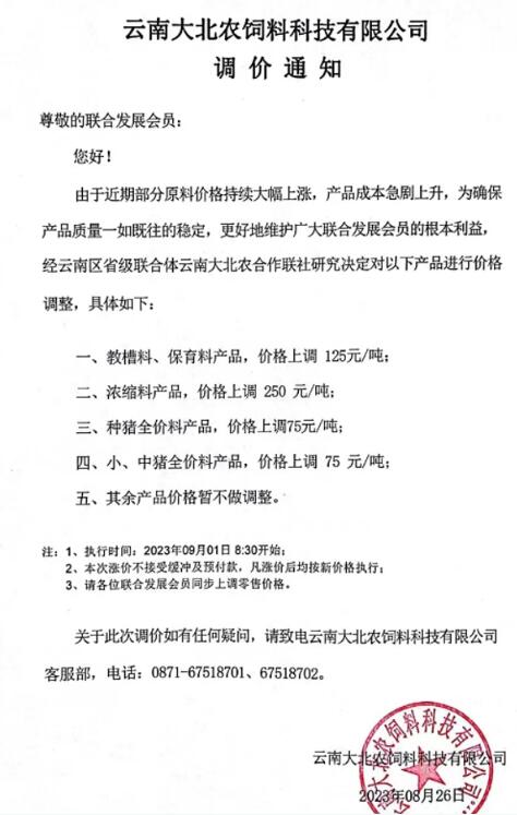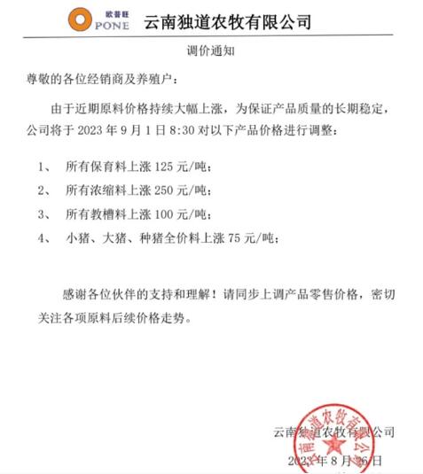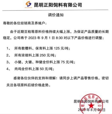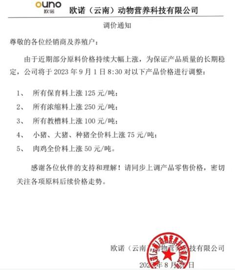 除了以上我們提到的豆粕、玉米等原料,棉粕、氨基酸、氫鈣等品種也有所上漲,9月多家飼料企業(yè)再次調(diào)價上漲,最高上漲250元/噸。