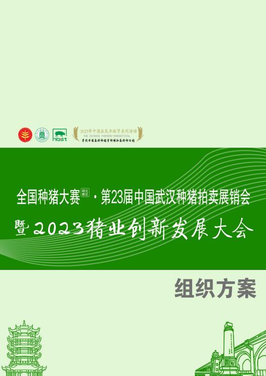 2023 年中央一號文件提出深入實(shí)施種業(yè)振興行動。認(rèn)真貫徹落實(shí)習(xí)近平總書記重要指示批示和中央一號文件精神,作為“豬糧安天下”的忠實(shí)踐行者,由湖北省農(nóng)業(yè)事業(yè)發(fā)展中心、華中農(nóng)業(yè)大學(xué)、湖北洪山實(shí)驗(yàn)室聯(lián)合主辦,農(nóng)業(yè)農(nóng)村部種豬質(zhì)量監(jiān)督檢驗(yàn)測試中心(武漢)、湖北省養(yǎng)豬行業(yè)協(xié)會、國家家畜工程技術(shù)研究中心、國家生物育種產(chǎn)教融合創(chuàng)新平臺(生豬)、動物育種與健康養(yǎng)殖前沿科學(xué)中心、生豬健康養(yǎng)殖協(xié)同創(chuàng)新中心、湖北省家畜種業(yè)技術(shù)創(chuàng)新中心、湖北省畜牧獸醫(yī)學(xué)會等單位共同承辦的“2023 年中國農(nóng)民豐收節(jié)系列活動”全國種豬大賽(湖北賽區(qū))·第 23 屆中國武漢種豬拍賣展銷會暨 2023 豬業(yè)創(chuàng)新發(fā)展大會,將于 2023 年 10 月 16-18 日在華中農(nóng)業(yè)大學(xué)召開。