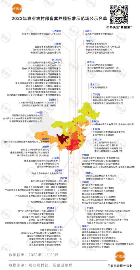 2023年新增生豬示范場中,四川一省就達到兩位數(shù)12家,而集團豬場創(chuàng)建數(shù)量依然是牧原獨占鰲頭,年內(nèi)新增9家,總數(shù)累計54家。