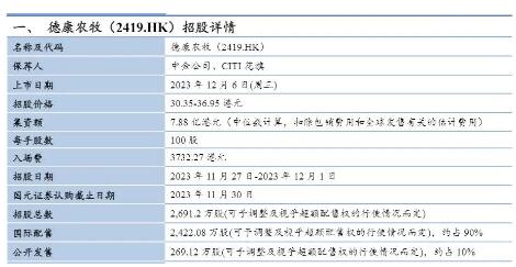 公告表示,本次招股擬全球發(fā)售2691.2萬股股份,中國香港發(fā)售股份269.12萬股,國際發(fā)售股份2422.08萬股;2023年11月27日至12月1日招股,預(yù)期定價(jià)日為12月4日;發(fā)售價(jià)將為每股發(fā)售股份30.35-36.95港元。