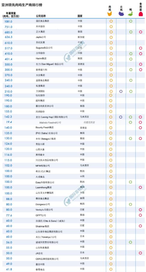 亞洲頂尖肉雞企業(yè)57強